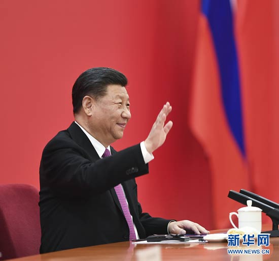 习近平强调,今年是中俄建交70周年,我和普京总统共同宣布发展中俄新时代全面战略协作伙伴关系,一致决定继续将发展中俄关系作为各自外交优先方向,坚定不移深化两国战略协作和各领域合作。当前,中俄两国都处于国家发展的关键时期,中俄关系迈入新时代。希望双方再接再厉,打造更多像东线天然气管道这样的拳头项目,为两国各自发展加油助力,更好造福两国和两国人民。