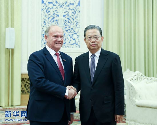 12月4日,中共中央政治局常委、中央纪委书记赵乐际在北京人民大会堂会见由俄罗斯联邦共产党中央委员会主席久加诺夫率领的俄共代表团。 新华社记者 丁海涛 摄