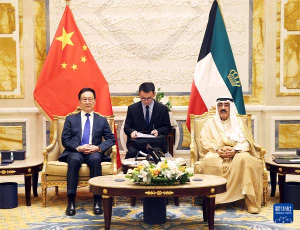 当地时间11月1日至2日,应科威特王储萨巴赫邀请,国家副主席韩正访问科威特。这是11月2日,韩正在科威特城会晤科威特埃米尔米沙勒。